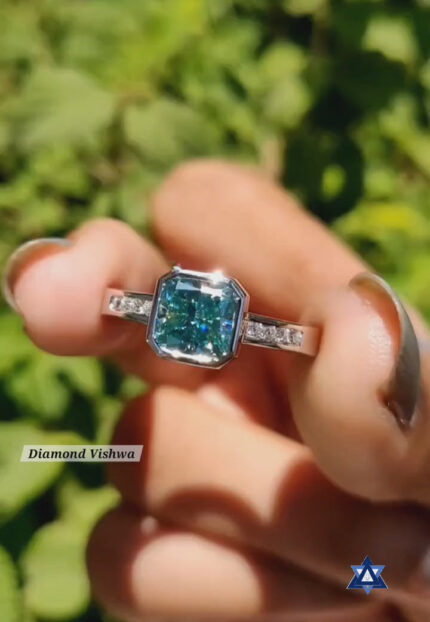 Bezel Set Cushion Cut Cyan Blue Moissanite Engagement Ring – Channel Set Pave Band – 925 Silver