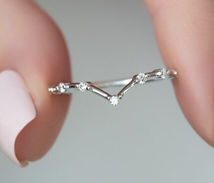 Chevron Patterned Diamond Wedding Band Ring, Brilliant Cut Diamonds, Stackable Bridal Jewelry