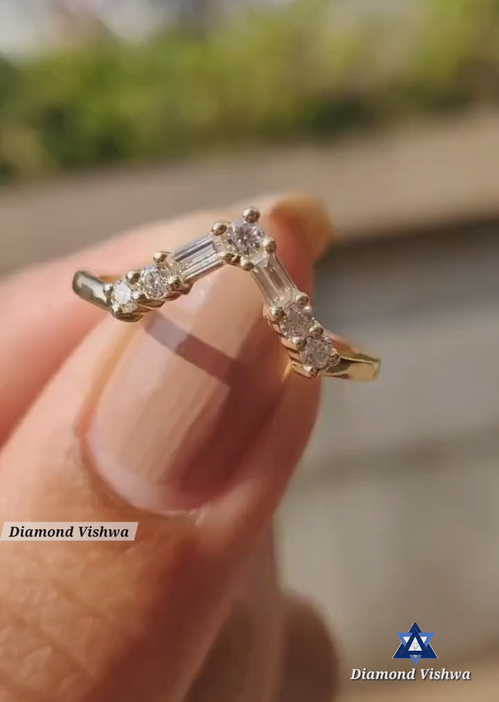 0.27 CT Baguette & Round Lab Grown Diamond V-Shaped Chevron Wedding Band