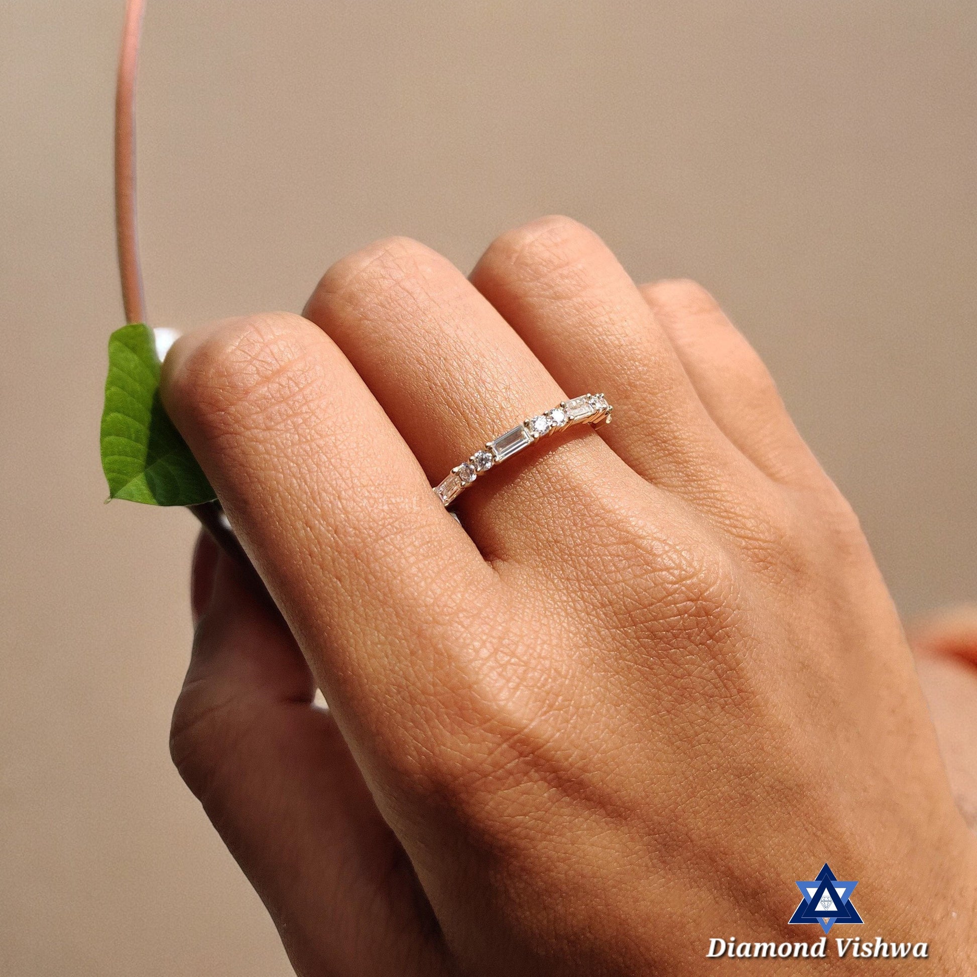 When you choose Diamond Vishwa, you choose more than just a ring; you invest in a piece of artistry that is as unique and special as your love story. Our Sparkling Moissanite Diamond Wedding Band is not just an adornment; it's a symbol of your unbreakable bond, designed to be cherished for a lifetime. As you browse our collection, know that you are shopping at a store where authenticity, creativity, and handcrafted quality stand at the forefront. Let the Diamond Vishwa Shop be part of your love legacy, and allow this stunning wedding band to be the emblem of your affection, devotion, and unending circle of togetherness this enchanting piece to your collection today and let your love shine bright for eternity.