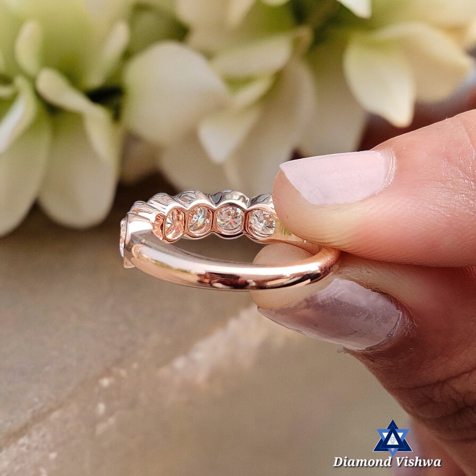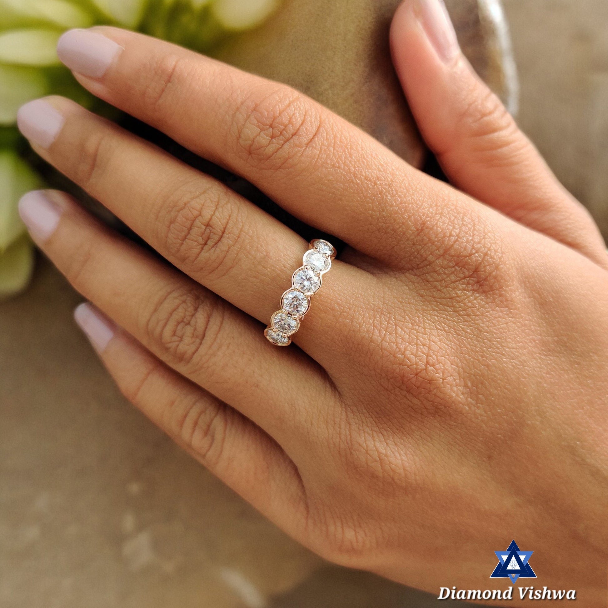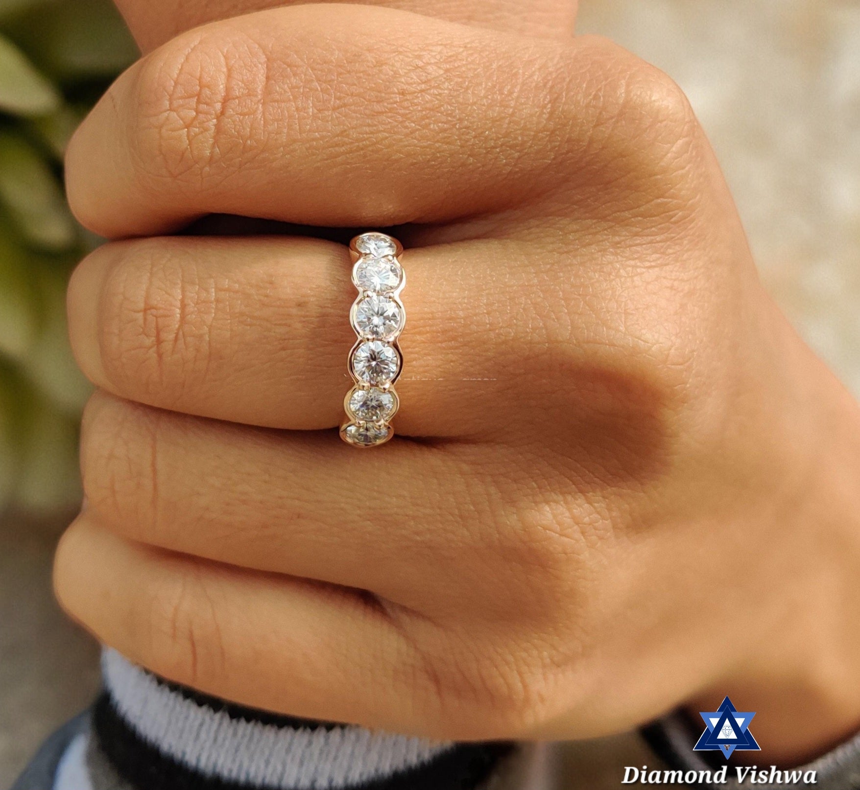 Welcome to Diamond Vishwa, where every sparkle tells a story and every ring holds a promise. Introducing our crowning jewel – the Sparkling Lab Grown Diamond Wedding Band, a treasure that embodies eternal love and unwavering commitment. Handcrafted with the utmost care, this full eternity ring features a continuous circle of radiant, round-cut Lab Grown diamonds, each one meticulously set to catch the light from every angle. It’s not just a ring; it’s a testament to everlasting love.