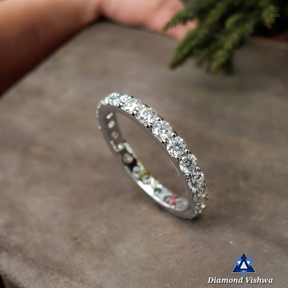 Welcome to Diamond Vishwa, where every sparkle tells a story and every ring holds a promise. Introducing our crowning jewel – the Sparkling Lab Grown Diamond Wedding Band, a treasure that embodies eternal love and unwavering commitment. Handcrafted with the utmost care, this full eternity ring features a continuous circle of radiant, round-cut Lab Grown diamonds, each one meticulously set to catch the light from every angle. It’s not just a ring; it’s a testament to everlasting love.