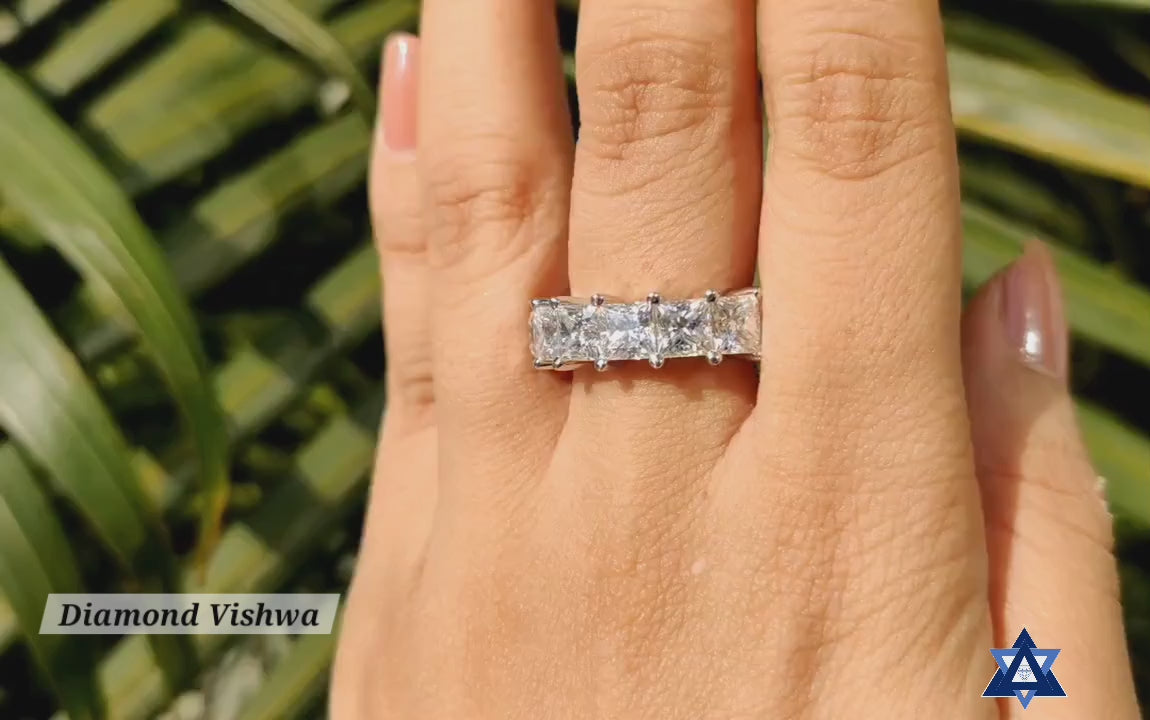 5mm Princess Cut Colorless Moissanite Eternity Band 9.62-14.80 CTW | White/Yellow/Rose Gold Anniversary Wedding Ring Gift – 925 Silver