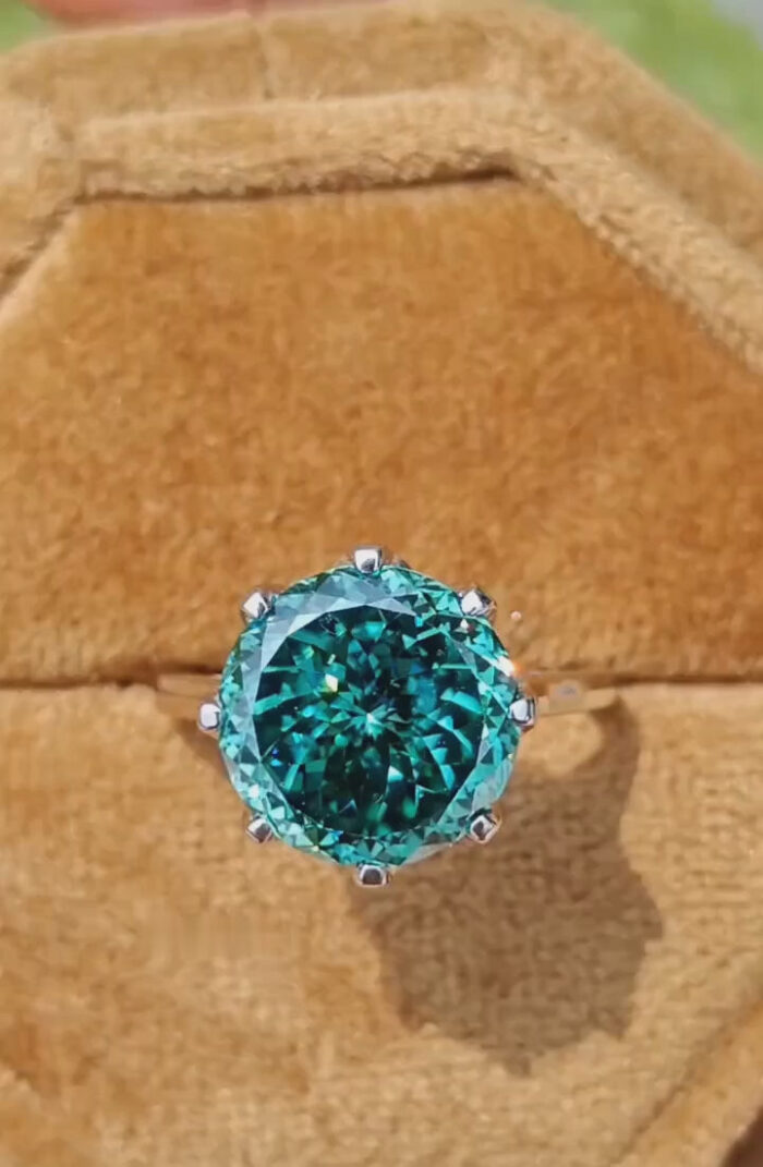 Antique Portuguese Cut Green Moissanite Solitaire Engagement Ring – 8 Prong Wedding/Anniversary Band for Her