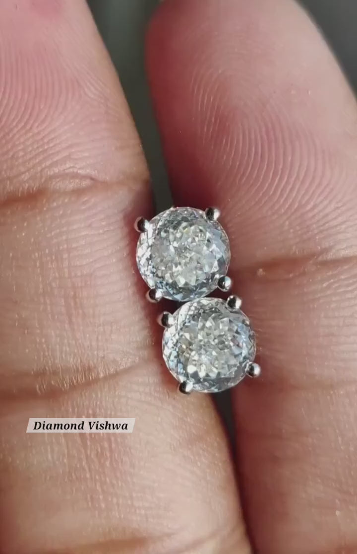 Colorless Moissanite Stud Earrings – Portuguese Cut Brilliant Gemstones | Screw Back Earrings for Women | Bridal Jewelry Gif – 925 Silver / Push Back