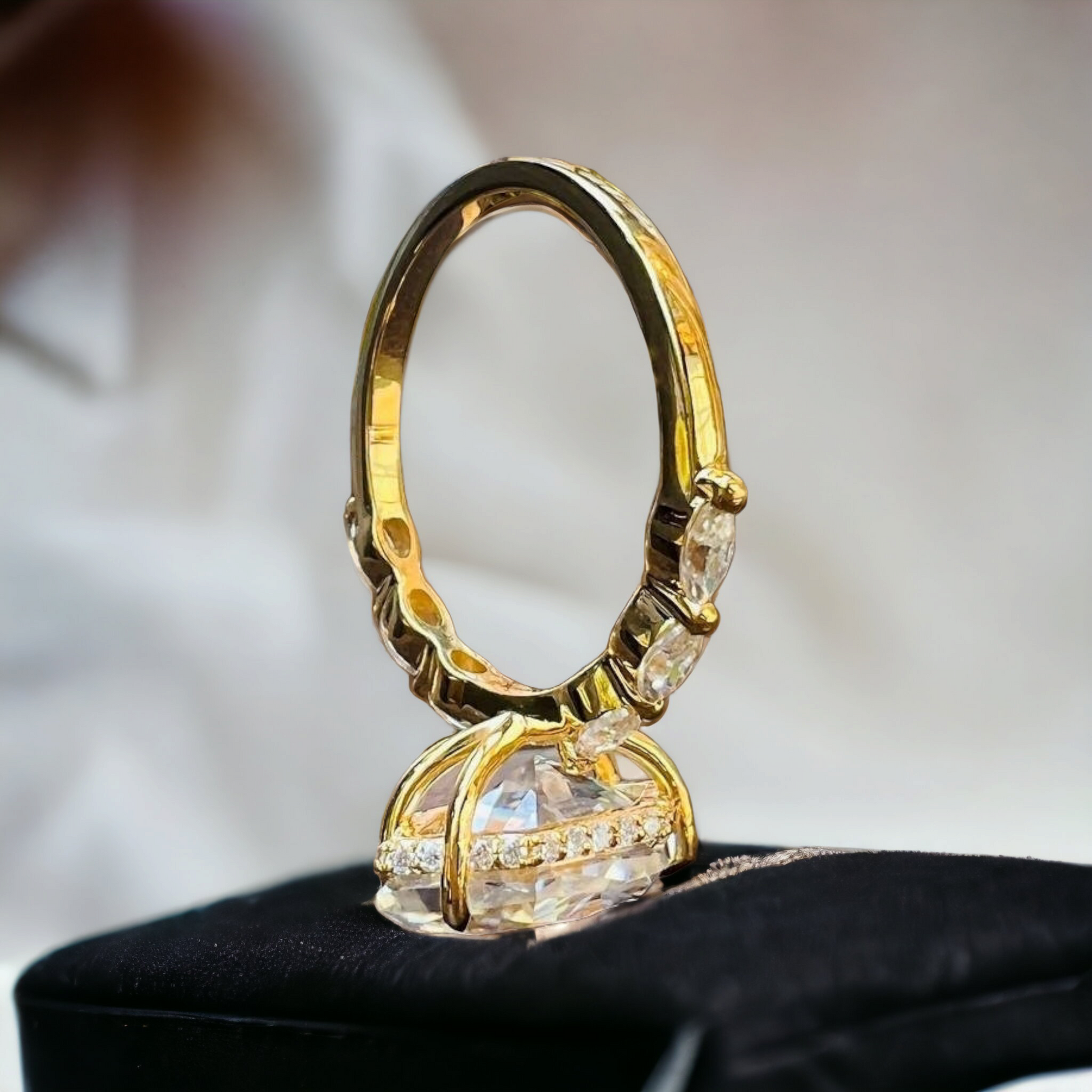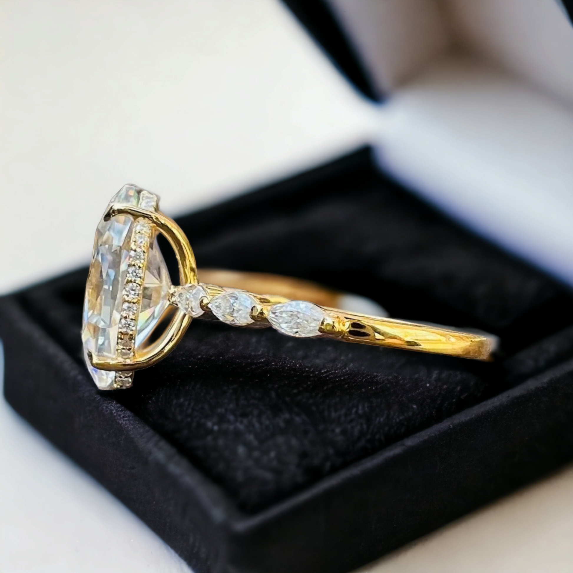 Dutch Marquise Moissanite Diamond Ring | Hidden Halo Design