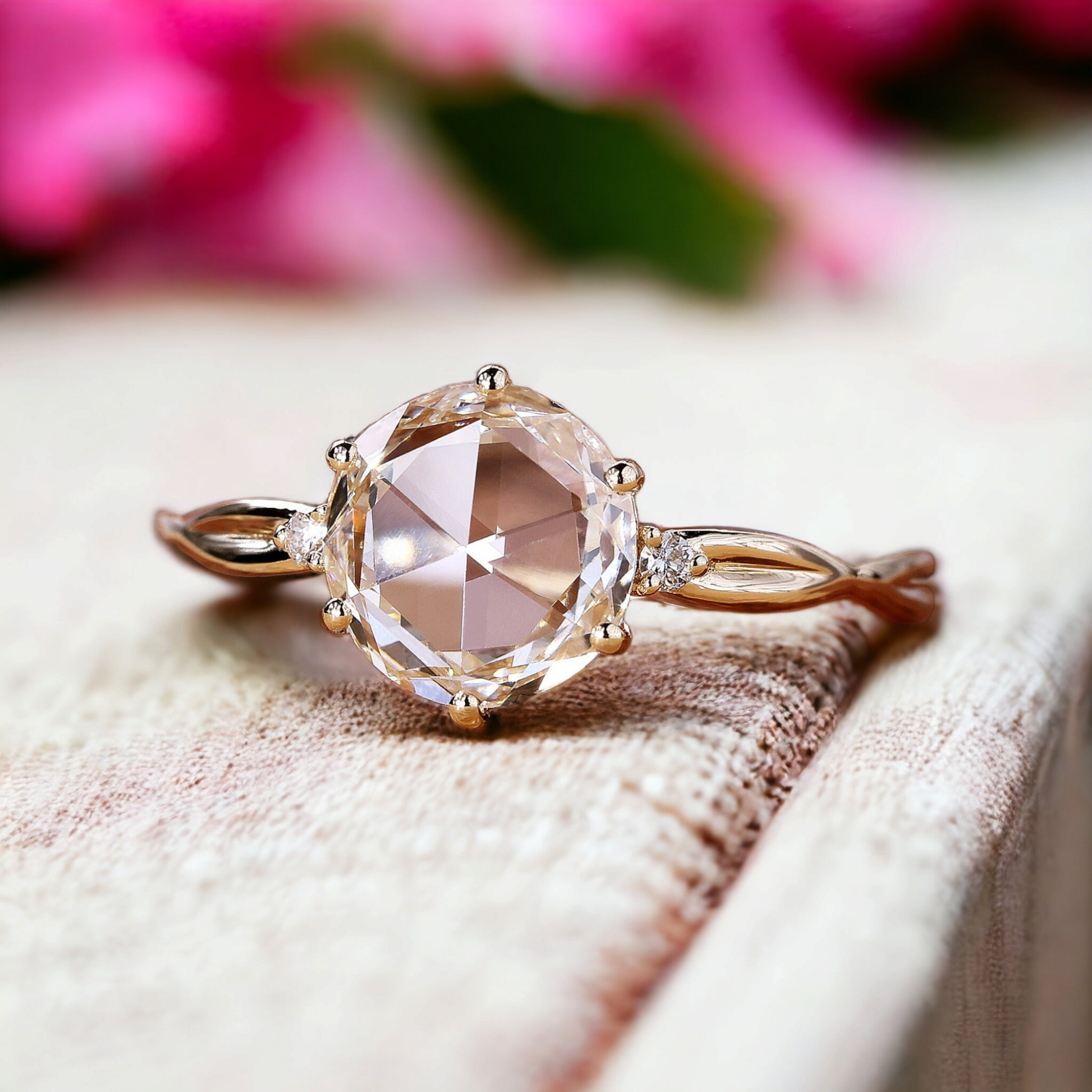 Elegant Round Rose Cut Diamond Ring – Unique Solitaire Engagement Piece, Perfect Proposal Gift
