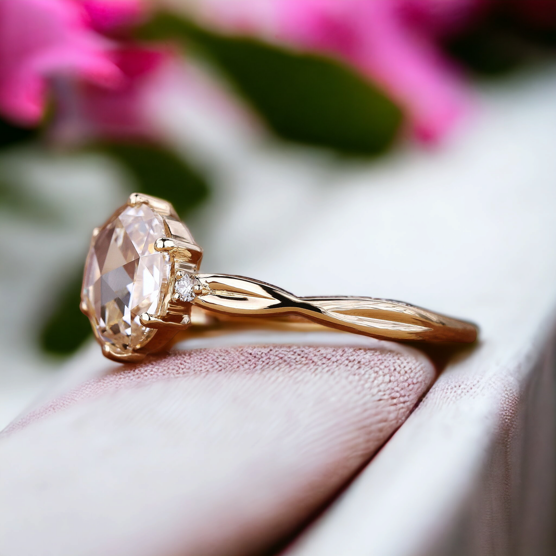 Each moissanite diamond is meticulously selected for its exceptional quality and sustainable brilliance, ensuring your engagement ring is not only a statement of luxury but also an eco-conscious choice. The antique Diamond cut, known for its intricate faceting, enhances the stone's natural sparkle, making it the centerpiece of adoration. With a band forged from the finest materials, this ring is available in a range of sizes to ensure a perfect fit. To maintain the splendor of your ring, we recommend gentle cleaning with a soft cloth and avoiding exposure to harsh chemicals.