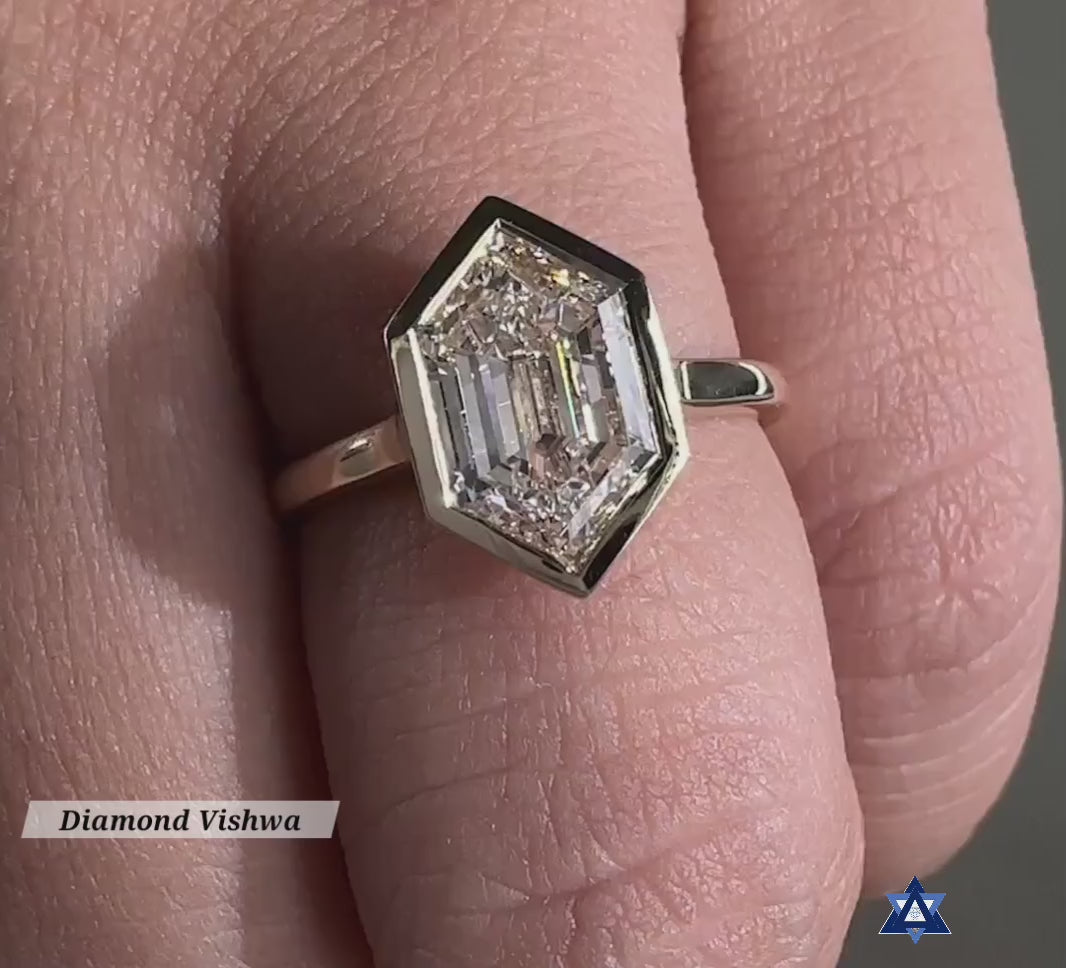 Hexagon Step Cut Moissanite Solitaire Engagement Ring Cathedral Bezel Setting – 925 Silver