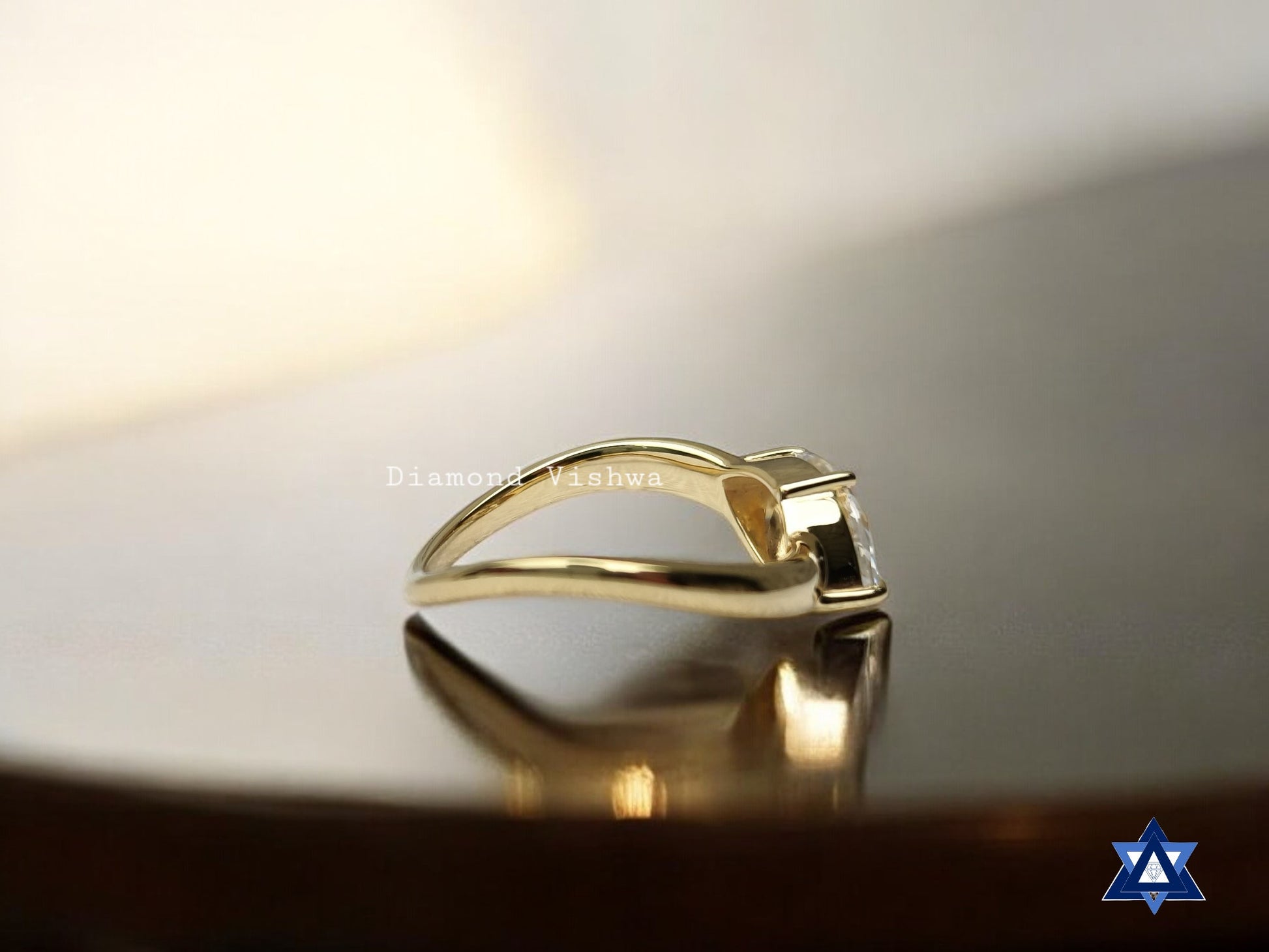 Marquise Cut Moissanite Engagement Ring with Wave Band Design – 925 Silver