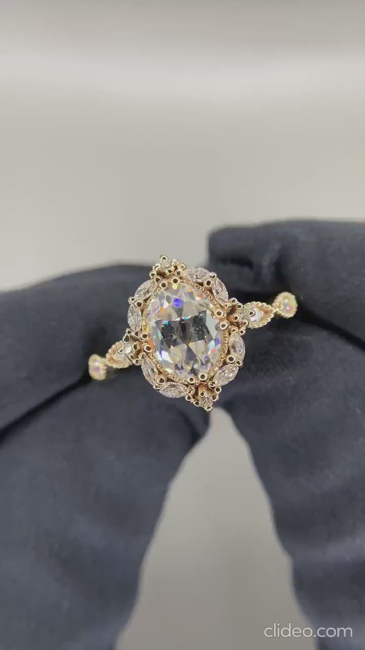 Oval Moissanite Halo Engagement Ring – White Gold Anniversary Ring, Anniversary/Gift Ring for Her – 925 Silver