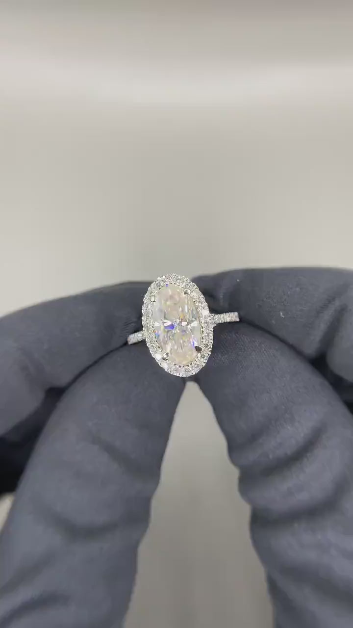 Oval Moissanite Halo Engagement Ring – White Gold Anniversary Ring, Anniversary/Gift Ring for Her – 925 Silver