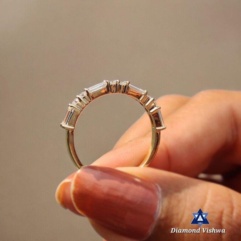 0.64 TCW Baguette & Round Moissanite Half Eternity Wedding Band in Yellow Gold