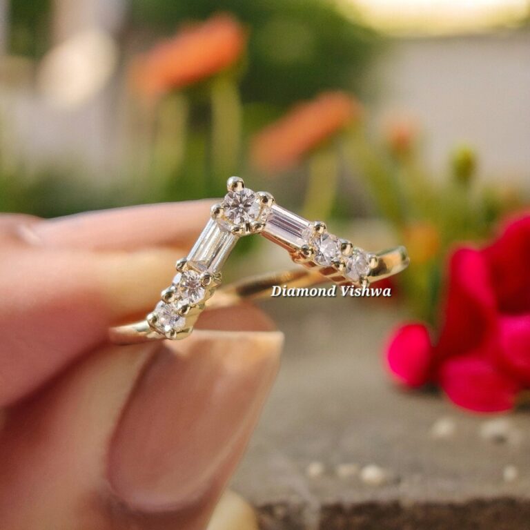 0.27 CT Baguette & Round Lab Grown Diamond V-Shaped Chevron Wedding Band